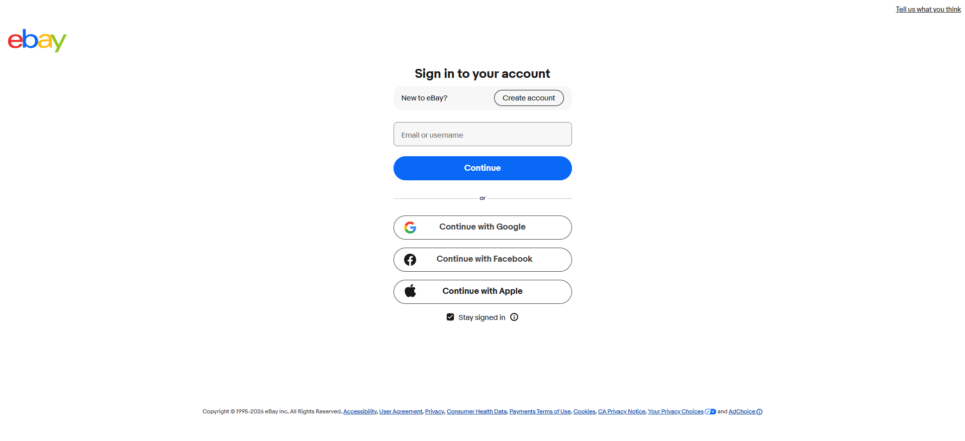 - You will be redirected to eBay. Log in to your eBay account to authorise the connection.